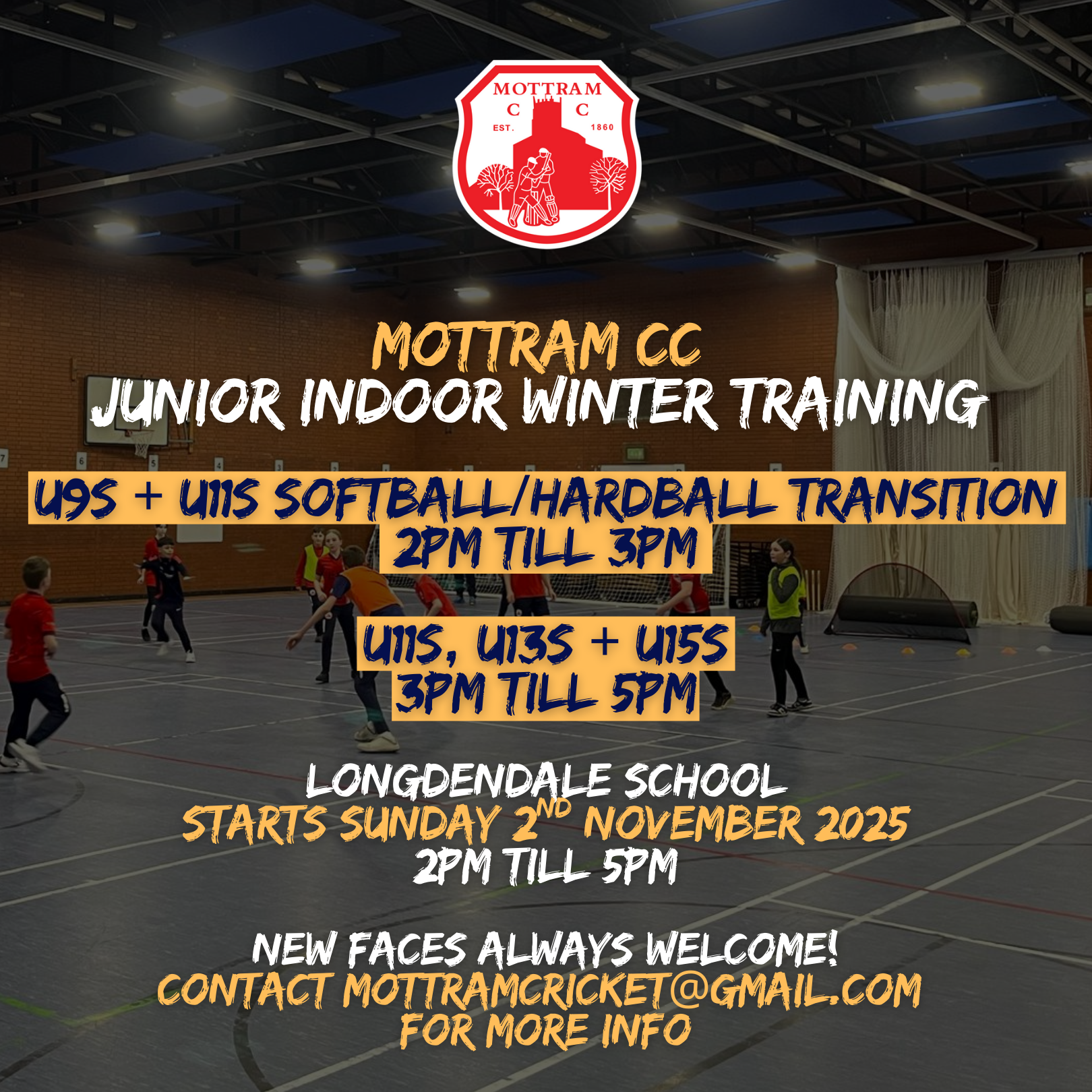 Junior Winter Training for U9s, U11s, U13s and U15s will take place at Longdendale School, every Sunday from Sunday 2nd November 2025 (some occasional venue changes maybe required due to exam schedules.)