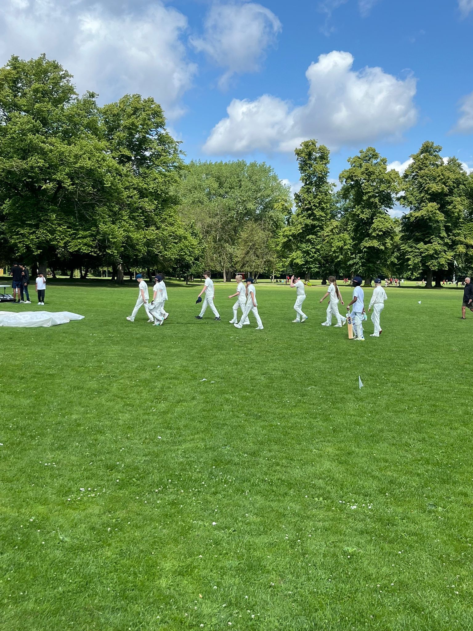 GMCL campaign finally got back underway three weeks later in Alexandra Park, with the 13s timing their chase to perfection. Playing on a full-length adult track, the 13s did a brilliant job of restricting runs, with Isaac’s 2/8 the pick of a good bunch. Friends scored 85.